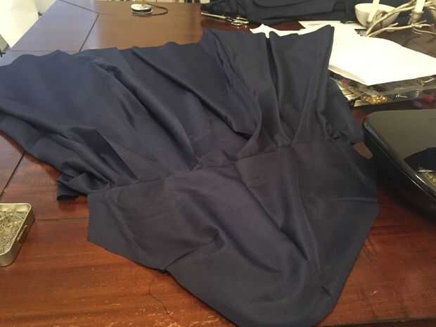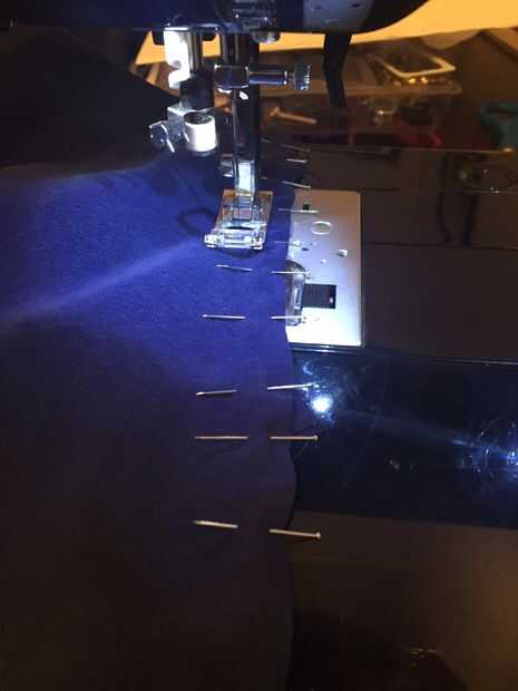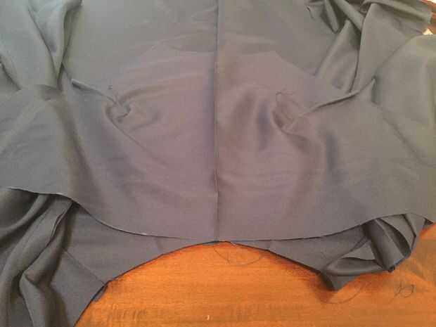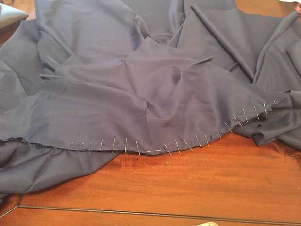 En primer lugar, pone blusa de guarnición en guarnición falda derecho lados juntos, centros y polos a lo largo del borde inferior. Coser en el margen de costura de 5/8".