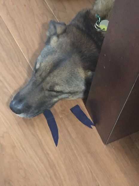 Chatarra-perro va a dormir directamente en su camino, pero es importante dejar chatarra-perro dormir será travieso y tire de proyecto de mesa de trabajo. Dejar dormir perro chatarra.