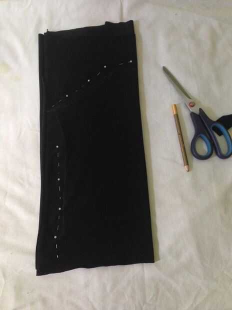 Doblar la tela en cuatro, pin todo y uso una vieja camisa (la camisa debe ser doblada en dos y colocan en la tela) luego dibuje una línea junto con la camisa y corte!
