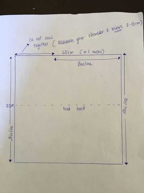 Mida su hombro y menos 8 a 10 cm (dependiendo de su preferencia), esto es el ancho que usted no cose. Coser a lo largo de ambos lados mal, dejando el ancho de las Naciones Unidas-coser.