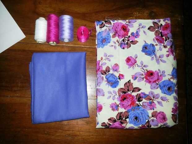1) tela floral colorida (usé 1 yarda pero depende de cuánto tiempo desea que el vestido)