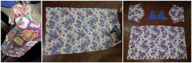 Parte superior del cuerpo: Usé a tela azul llana en la parte superior. Para cortar estas piezas que tendrás que medir el hombro, el pecho y la longitud de la parte superior. . Use tiza para marcar los contornos y cortar las piezas con cuidado. Mientras se reduce a esta parte, asegúrese de que mantener al menos 0,5 pulgadas extra (para coser).
