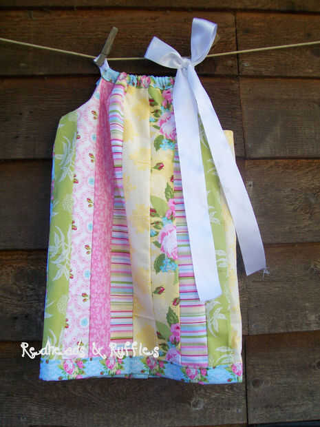 Me encanta hacer vestidos bonitos para mi nieta. Me encontré con una hermosa funda de almohada bordada en una tienda local de antigüedades. He pagado menos de $5 por él. Este proyecto no tome mucho en todo. Es el vestido perfecto para una niña. Mi ni