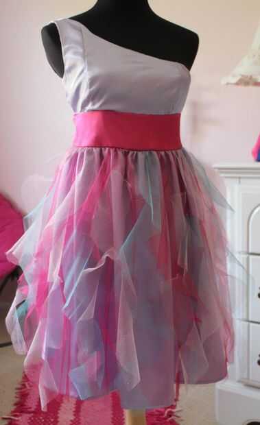 Cuando empecé a construir el vestido, no sé dónde empezar porque nunca lo he empezado desde cero. Comencé a mirar otros patrones similares a mi diseño para obtener un tamaño aproximado. Devengarán todo y que todo ajuste antes de coser el vestido juntos. Algunas cosas no fueron muy fáciles, pero en general era una diversión, proceso rápido. Los volantes de abajo se hacen fuera de la de tul. Porque tul desentrañar al corte, fue bien con tener los bordes abiertos. Las colmenas se hacen cortando un buñuelo medio fuera el tul y luego coser el recto superior en todo. Por el recto medio donut a través de la costura, permite que el volante caiga y rizar naturalmente en una colmena. Esto sucedió en varias secciones del vestido, creando un mar de volantes! Son el punto culminante del vestido.