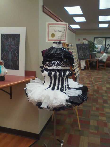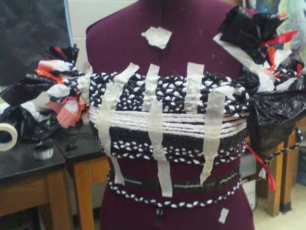 Hice este avant grade vestido para Keep Orlando Beautiful, basura 2 tendencias para recaudar fondos en Orlando, FL. La prenda está hecha enteramente de basura y reciclado elementos (a excepción de un cierre!). Por suerte tomé varias fotos de la ropa