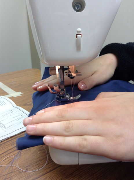 coser una puntada de estancia alrededor del borde de la parte delantera de la blusa