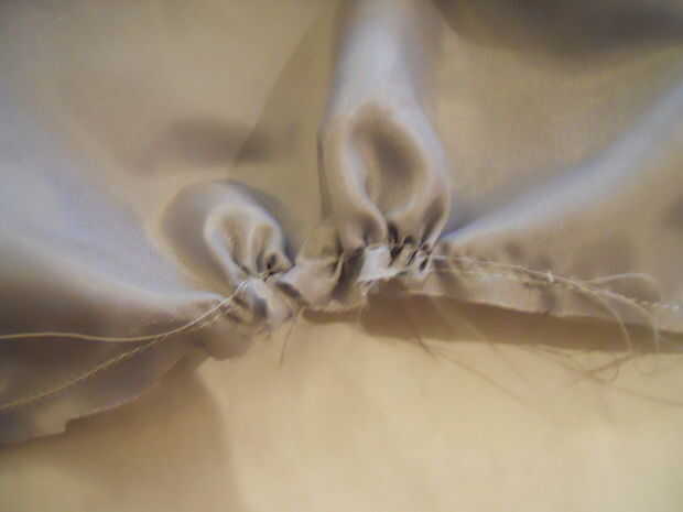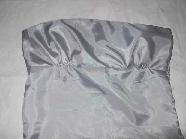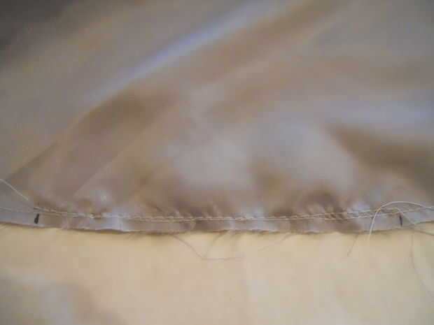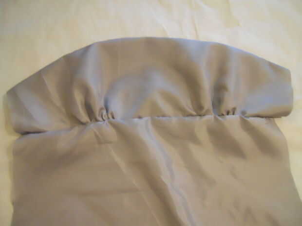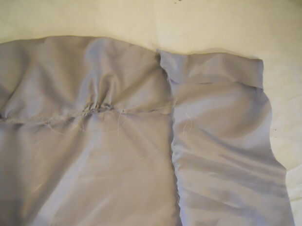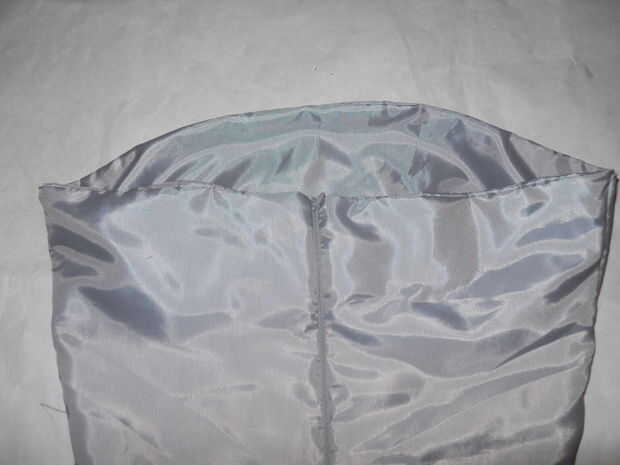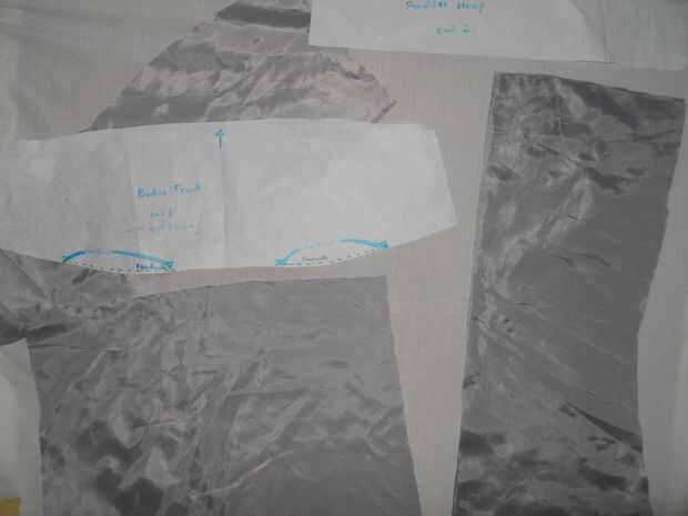 La parte superior comienza en cuatro pedazos. El delantero y forro, el delantero más bajo y las piezas de la espalda (cada uno cubriendo Media la espalda con cremallera hasta el centro.)