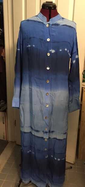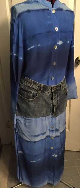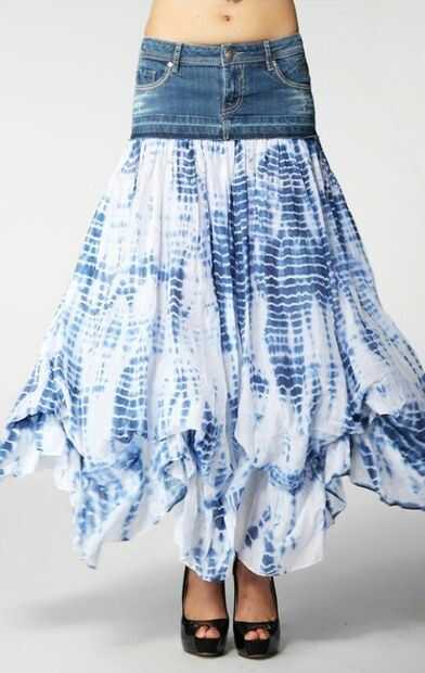 Heredé un vestido vintage de mi madre cuando ella murió en abril de 2015. He tenido este vestido en mi poder durante meses, sin saber qué hacer con él. Era en colores y un patrón me encanta, y lo oportuno. Pero era demasiado largo y no es práctico para mi vida. Tie-dyed Denim falda