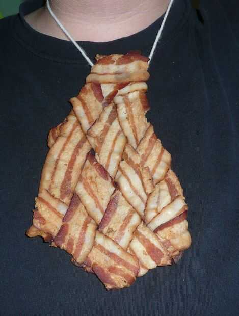 Para hacer este lazo, sólo necesita 8 tiras de tocino y una bandeja de asar, así como un horno de funcionamiento.