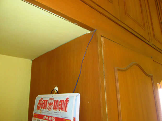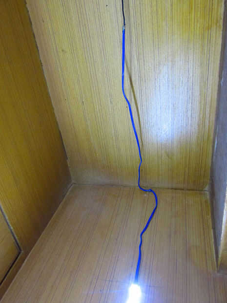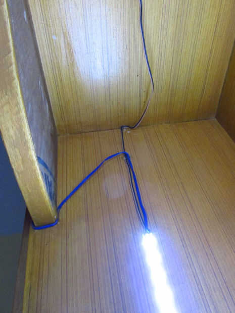 Como se ve en las imágenes, que tenía un punto de conexión de red y un calendario cerca. Corte el pasador de extremo del adaptador, soldar los cables directamente, había aislado con mangas y había escondido todo atrás el calendario. Menos de un ojo dolorido, pero los cables eran todavía visibles (a añadir a la miseria, utilicé unos azul oscuros :()