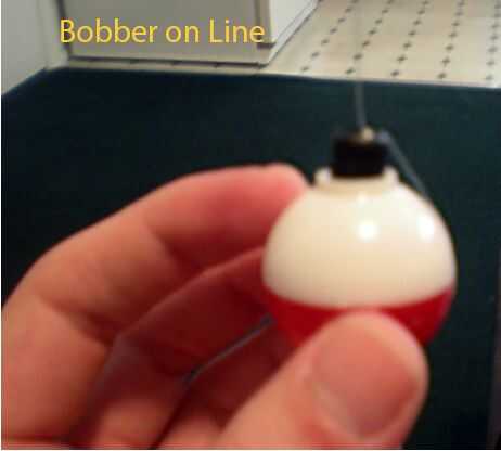 a. poner en el corcho. Tienes que poner thebobber con 3-4 pies de línea sobrante por debajo de ella. Hay ganchos en la parte superior e inferior del corcho (la parte superior suele ser el lado con un pequeño cilindro que sobresale. Ver imagen de arriba). Para exponer el gancho inferior, empuje hacia abajo el cilindro de plástico. Para exponer el gancho superior, pon tu dedo sobre el gancho inferior y empuje hacia abajo en el mismo cilindro de plástico. Ahora, para sujetar al corcho a la línea: