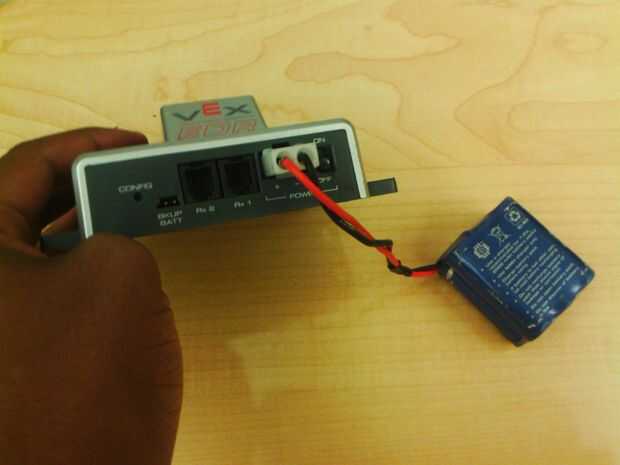 Asegúrese de que usted conecte una batería completamente cargada en el robot vex. Enchufe es en como se muestra.