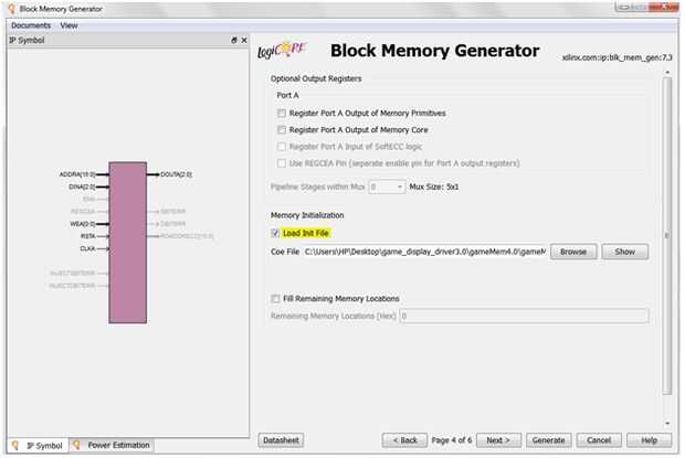 • El controlador de memoria de juego utiliza un núcleo de ip para la ram, para crear esto siga estos pasos: