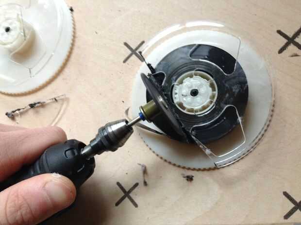 - Coloque la herramienta rotativa a alta velocidad. Esto derretirá la cinta como corta, impide que la cinta caiga el carrete.