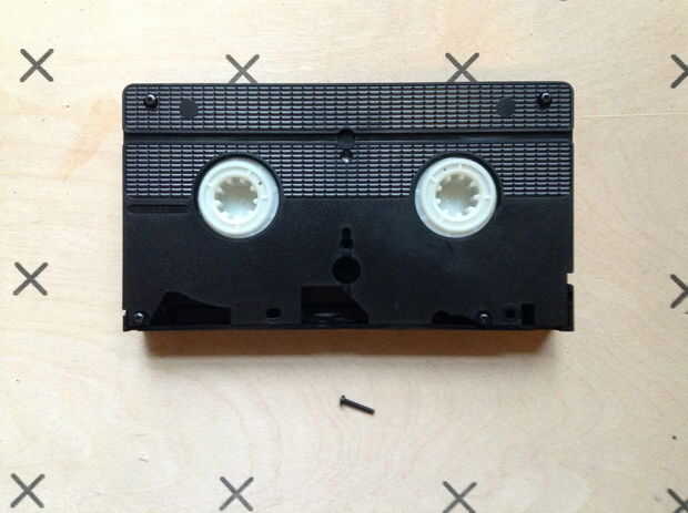 - Ajuste la parte superior e inferior mitades del cuerpo de la cinta VHS junto y dale la vuelta. -Atornillar la parte posterior del caso, pero sólo con los cuatro tornillos rinconeros. Deseche el quinto tornillo que iba en el centro de la cinta. -Poner la cinta en su caso. -¡ Listo!