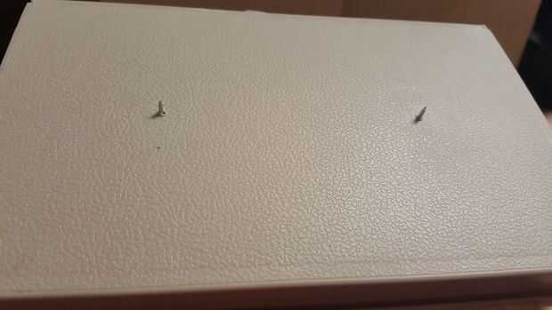 4. mantiene los rodillos en su lugar, gire el caja encima y poner pegamento caliente alrededor de la parte penetrado de la uña (ver imagen)