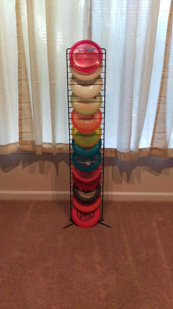 Aquí es lo que parece el producto final. No toco como tanto como solía por lo que los discos están en exhibición más de lo que se utilizan. He hecho esto durante unos 4-5 años, y no he notado ninguna deformación de los discos que le afectan su desempeño.