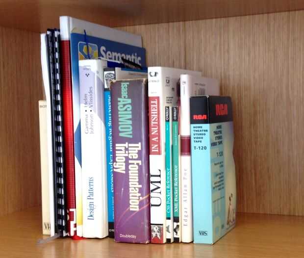 Yo estaba haciendo un retro años 80 tipo de cosa en mi oficina y necesita algunos delimitadores, así que miré a mi alrededor Shoppe y Etsy de Scoutmob. Pasó a ver a alguien venden sujetalibros de Cassette de VHS y estaba a punto de comprar em, cuando me di cuenta... "bueno, tengo cajas de cintas VHS," y mi proyecto nació. Los procesos fue realmente sencillo, así que tomé algunas fotos, con la idea de que podría compartirla aquí algún día. No quiero poner las tiendas en esos sitios fuera del negocio, pero, de nuevo probablemente la gente que compra allí en su mayoría no es el tipo de fabricante ellos mismos. Así que aquí está mi pequeña cosa de la cinta de vídeo. Espero que os guste.