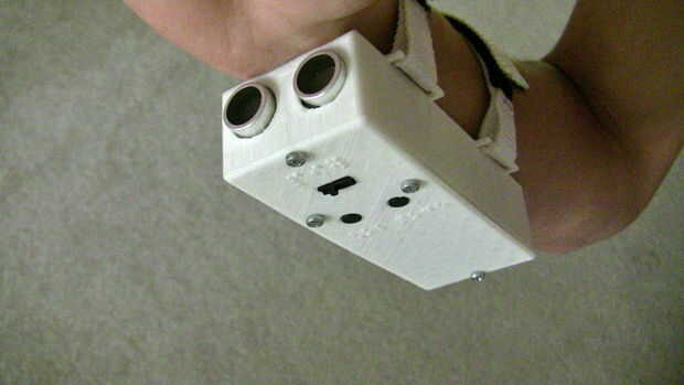 este proyecto fue mi opinión sobre una ayuda de bricolaje debilitación visual que utiliza retroalimentación háptica y sonido. Básicamente utiliza un sensor de distancia para medir hasta qué punto los objetos son de él y luego pitidos/vibra en consecuencia (lejos es lento vibrar/sonido demora y cierre hasta vibrar rápido/quick pitidos). Rápido real me gustaría reconocer que no soy el primero en hacer algo como esto, pero he añadido muchas cosas que son diferentes de los diseños he visto. Esto no se se utiliza con fines comerciales pero sólo como una guía para otros para quienes realmente se beneficiarían de que. La diferencia entre este proyecto y otros es este proyecto utiliza un sensor de distancia (a diferencia de muchos) para hacer comentarios más específicos y más simple de interpretar, usar de realimentación háptica y sonido, el montaje del dispositivo bajo el brazo y no conectado a la mano (mantiene libre de sentir dónde vas y uso para las tareas diarias) y unos pocos botones de control simple en el caso (también puse la palabra para cada botón en braille junto a ellos). Lo que me gusta el diseño es cómo compacto y robusto es. Puse todo por unas horas para acostumbrarse a él y encontró no obstaculizar muchas de mis actividades diarias (encontré caber en las mangas también!). Verlo en acción!