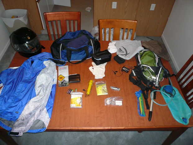 También incluí una foto de los artículos de la Wan. Todo lo que tiene con él en su moto lleva. Tiene material de camping porque duerme al lado de la carretera o en una campamento base durante la mayoría de sus viajes. Una cosa que tiene eso me debería haber llevado era una cerradura. La Honda Ruckus pesa menos entonces 200 libras, así que dos chicos en una camioneta podría hacer un trabajo rápido de robar la motocicleta. Siempre es bueno ser un poco más seguro.