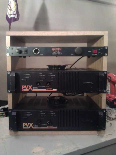 Profundidad: Mida la profundidad necesaria para sostener los amplificadores y espacio extra para gestionar las conexiones. Las tablas que utilizamos fueron 15.5" profundo y caben perfectamente, los amplificadores para que no tengamos que cortar depth-wise.