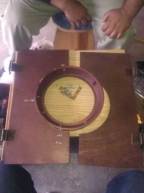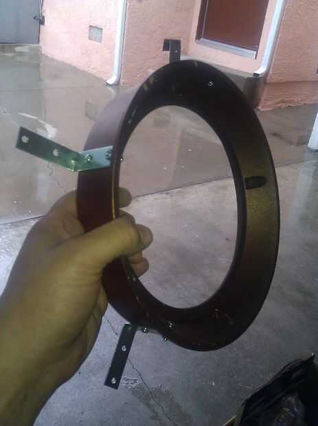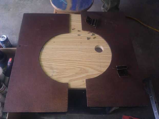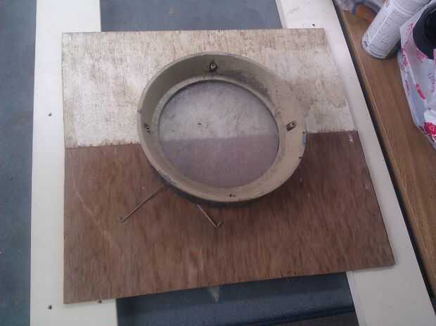 La cubierta de la iluminación también fue pintada de la misma manera que con la PSU realizada anteriormente. Luego montamos la cubierta de la iluminación con algunos soportes en L en una de las puertas de granero. Una vez tuvimos el ajuste correcto y la cubierta de la iluminación (ventana de la puerta ahora) fue unida, atamos la puerta a la caja de cuero-limite usando las bisagras de una remodelación de la cocina.