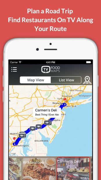 ¿Odio volar? ¿Pensando en tomar un viaje por carretera? Una de las mejores características de TVFoodMaps es la capacidad para planificar un viaje por carretera y encuentra todos los restaurantes a lo largo de la ruta. El menú principal del sitio web y aplicación móvil tienen enlaces para ejecutar la herramienta de viaje de carretera.