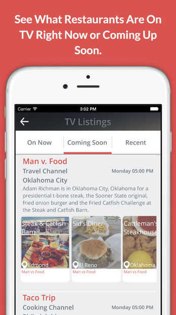 Otra característica interesante es que TVFoodMaps sabe lo que muestra es en la televisión y qué restaurantes que aparecen. Así que digamos que sabes que va a Portland, mí. Te puede interesar en la comprobación de episodios de programas con restaurantes en mí de Portland. O tal vez sólo quieres ver qué restaurantes vienen esta noche. De cualquier manera página de anuncios de televisión de TVFoodMaps puede ser muy útil. La aplicación de sitio utiliza listado de TV local Cruz hace referencia a datos de episodio para averiguar qué restaurantes son cuando.