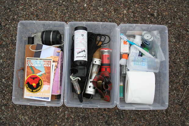 Es necesario un sistema organizacional. Siempre ha soñado hacer la conversión completa a estantes de madera, pero nunca han llegado a hacerlo. Hasta entonces, utilizar pequeños recipientes apilables para que todo sea fácilmente accesible. Utilizar recipientes separados para artículos de aseo, camping fuentes (encendedores, cuchillos, molle, etc.) y artículos personales (cámaras, libros, etc.)