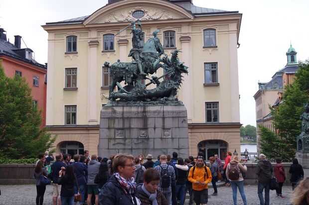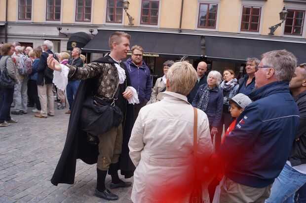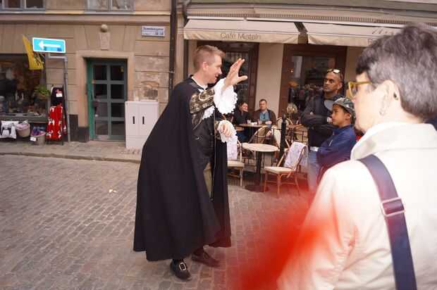 Puede hacer un montón de cosas gratis mientras que en Estocolmo. Ese tipo es una guía que da "free tours". No tienes que pagar una cuota pero se les puede dar algo. Hay un montón de gente dando este tipo de tours. Lo descubrí durante mi último viaje.