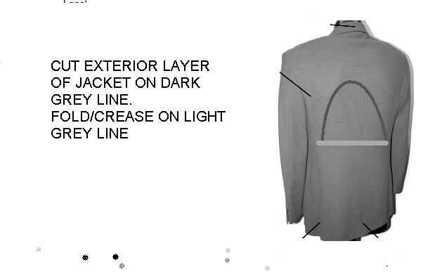 NOTA *** IMPORTANTE *** NO CORTE A TRAVÉS DE LA CHAQUETA ENTERA!!!!!! CAPA EXTERNA SÓLO!!!!!!