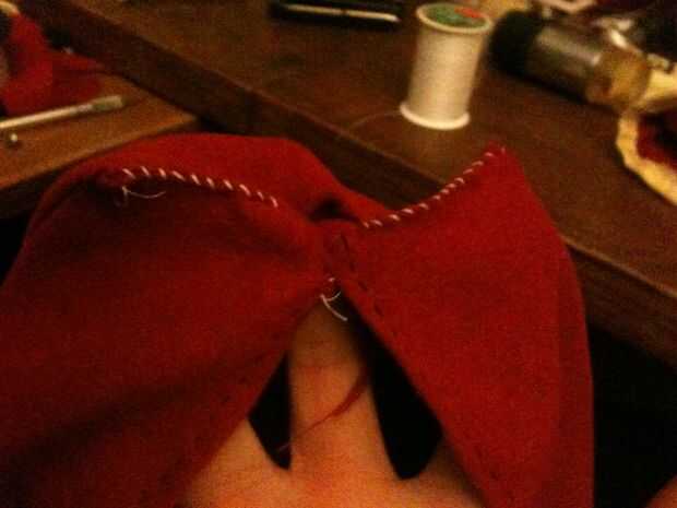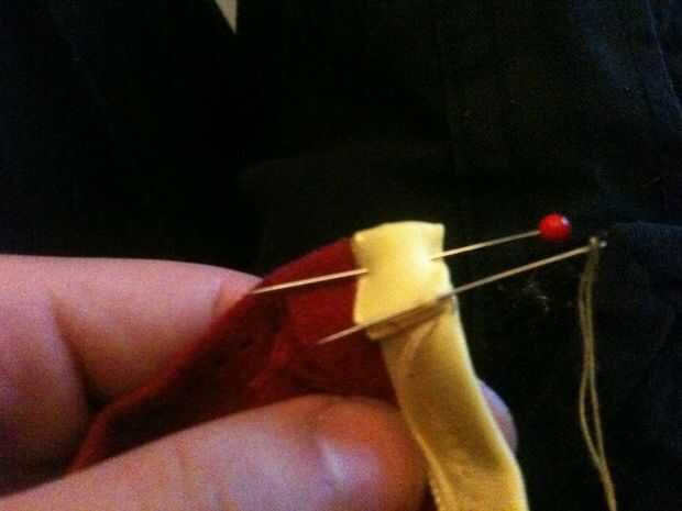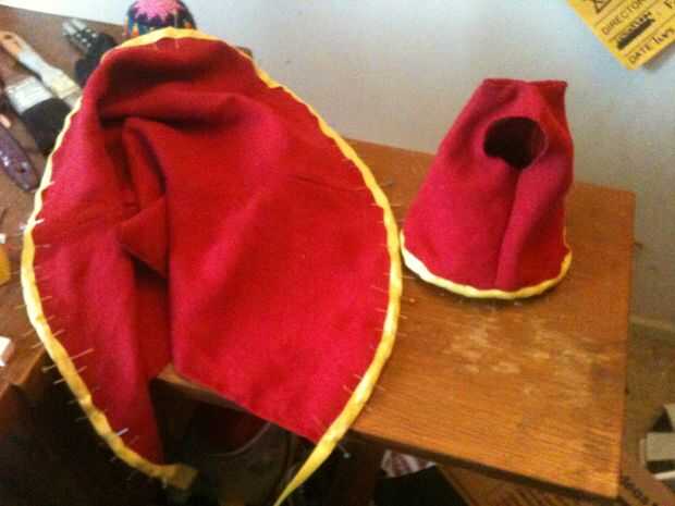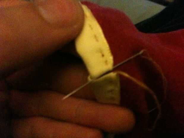 Coser la parte superior de la capa cerrada, mucho como hicieron con la tela que cubre el torso rígido. Otra vez, deje un espacio en el medio del cuello. Colocar unas puntadas en la parte superior de la abertura en el frente para asegurarse de que el cuello no escurrir a través de la división en el frente del cabo. Estas costuras se oculta por la campana.