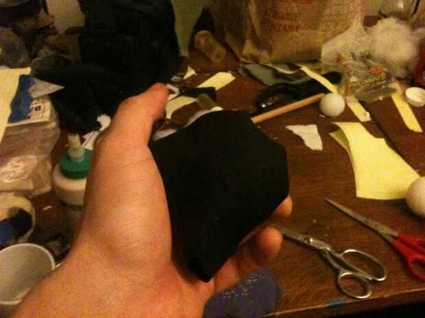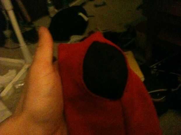 La diadema es sólo una simple franja de amarillo en la frente. Podría utilizar algunos de tu hilo cinta o bordado amarillo si tienes extra. Terminé usando un hilo amarillo tenía sobras de otros proyectos. Envuelva alrededor de la cabeza y colocarlo donde usted lo desee antes de poner en un par de puntadas hacia atrás, hacia el borde de la tela negra. Quieres estas puntadas ahora que bastante atrás por lo que se oculta por la campana.