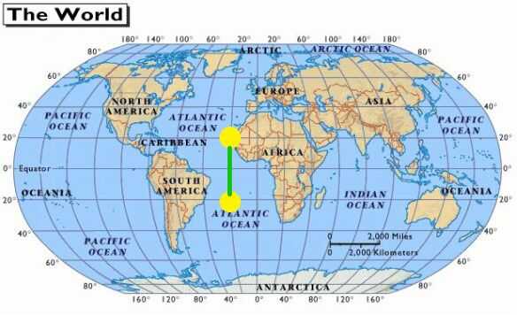 En cambio, la longitud opuesta debe ser 180°-20° = 160 ° oeste.