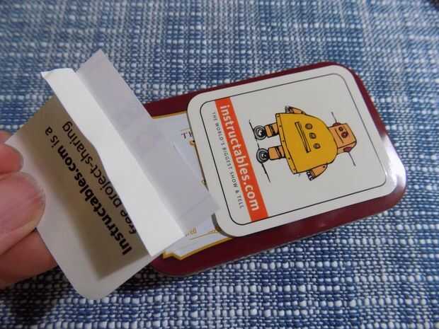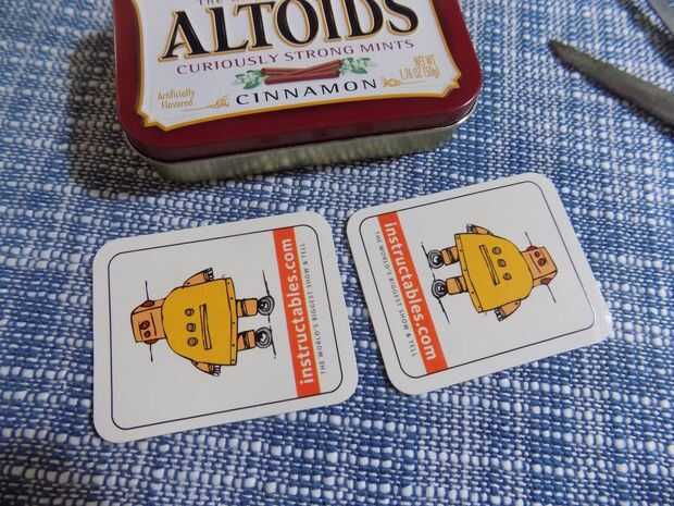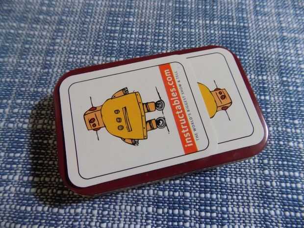 Me di cuenta de que estas pegatinas de Instructables caben muy bien encima de la lata, así que cortó uno al punto medio de un efecto de espejo y había aplicado en el exterior de la lata.
