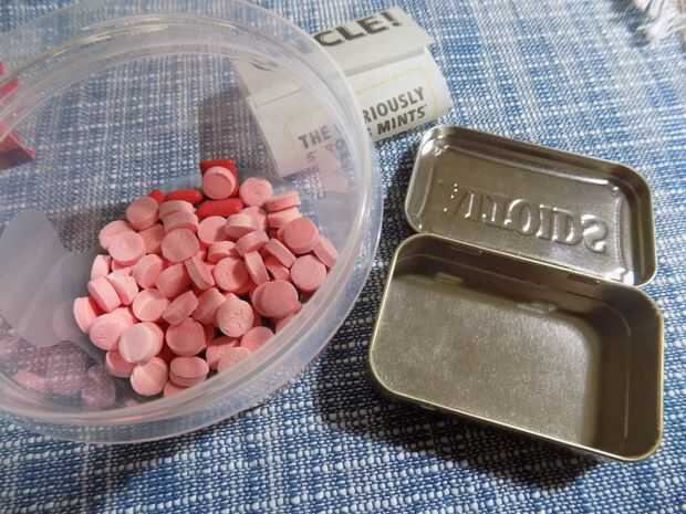 Vaciar la lata Altoids y bandeja de chicle Dentyne.