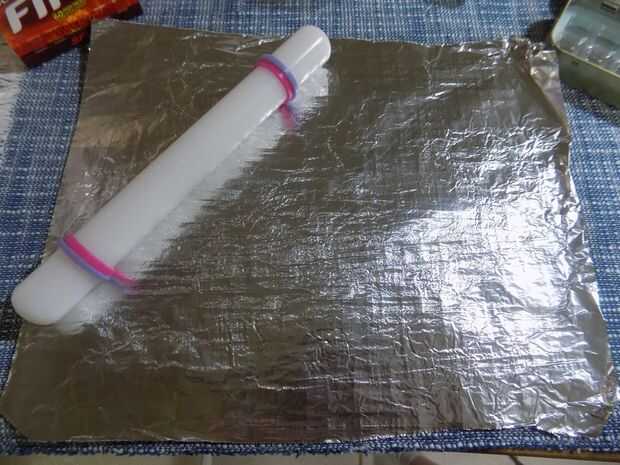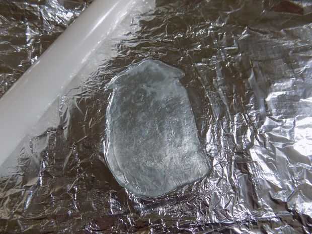 Estirar un pedazo de InstaMorph derretido sobre un trozo de papel de aluminio por lo que se trata de una 1/8" de espesor. Si no es suficientemente grande, puede recalentar con la pistola de calor y agregar más plástico derretido.