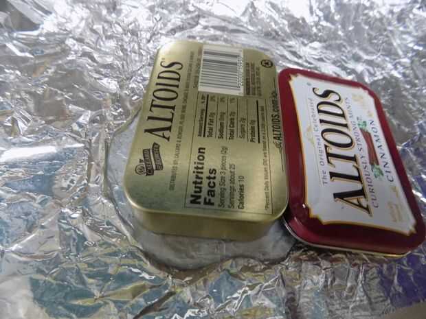 Presione la lata Altoids en el plástico aplanado para crear una impresión.