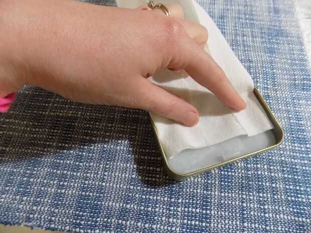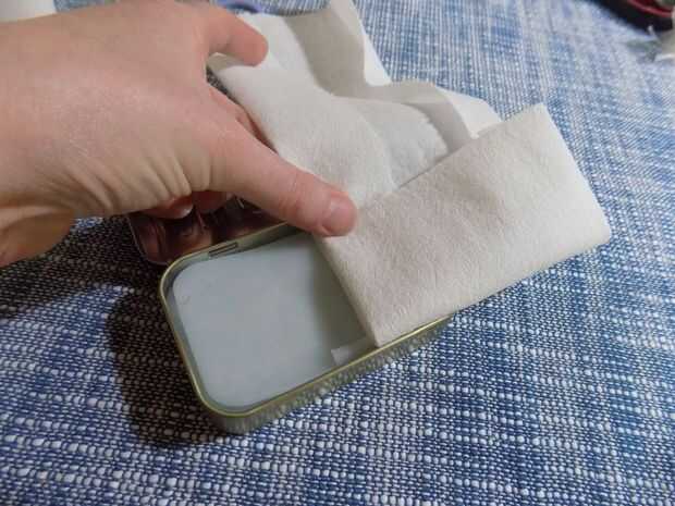 Recortar las esquinas de la toalla de papel doblada para que quepa bien en el espacio sobre la tapa de paleta.