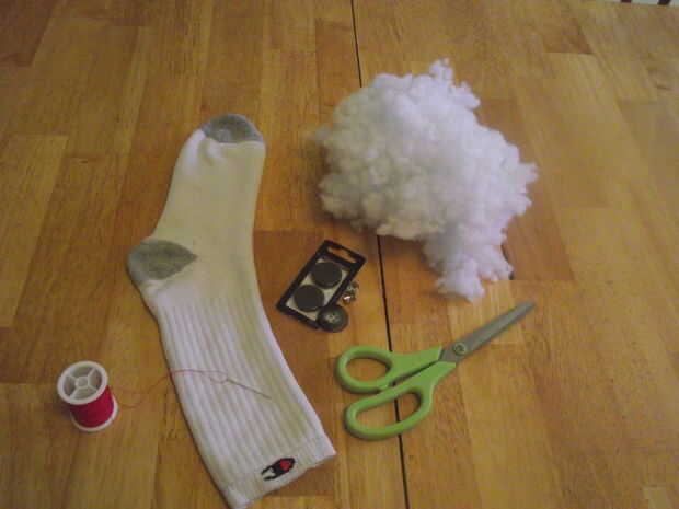 2 botones – para los ojos, pero algo más si se va a dar esto a un niño pequeño. Foto cosas poco remache que se puede colocar antes de empezar a coser, pero no es totalmente para niños. Pensar en pegar ojos de tela o con un marcador en su lugar.