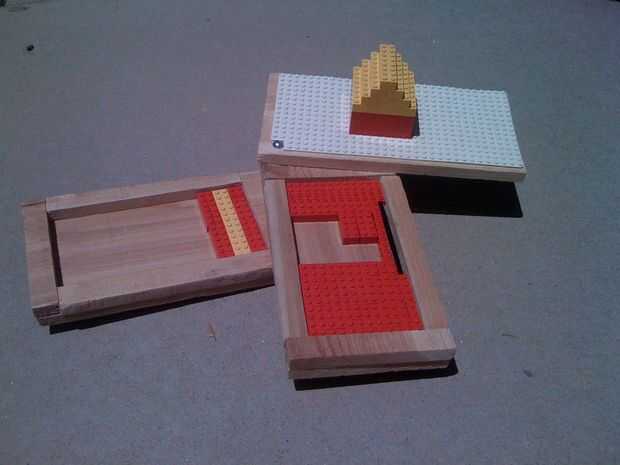una simple caja LEGO con una tapa deslizante. Este cuadro puede ser modificado fácilmente, pueden agregar más capas de ladrillos para hacer taller y dar más espacio de almacenamiento o podría incluso ser hecho plano y largo por algo más parecido a un