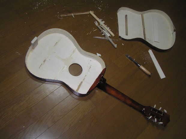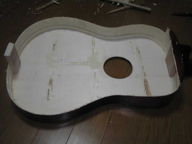 Asegúrese de dejar suficiente guitarra en este punto que el frente de la tapa armónica está todavía en el mismo lugar en comparación con el cuello. Esta manera, no tendrás que preocuparse por la colocación del puente más adelante.