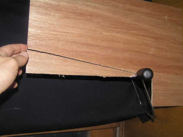 Corte un triángulo de madera contrachapada de la misma longitud que la primera junta y disminución gradual de la parte más gruesa de la guitarra (el talón) a un punto en el puente. Coloque a lo largo de los dos bordes, el "pie español" y la primera junta. Usé pegamento de madera y había cargado con pesados libros según el cuadro.