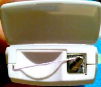 3. Cierre la caja asegurarse de poner la cola de hilo en su lugar (Fig. 4).