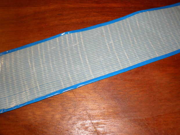 Corte de cinta de dos pulgadas más largos que el lado. Doblar los bordes para un acabado más limpio, coloque ambos lados en la cinta. Ejecute otro pedazo de cinta adhesiva en el interior. Esto mantiene la costura fácil doblar ya que tendrá sólo dos capas de cinta.