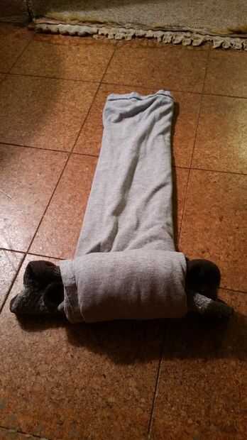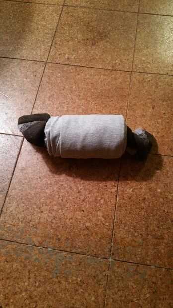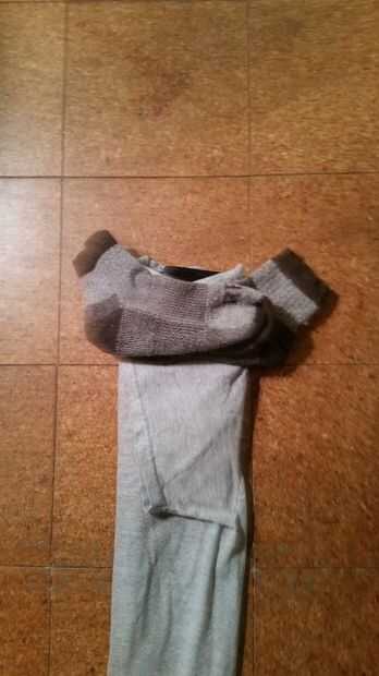 En este paso, coloque las medias para que los puños de tobillo son una o dos pulgadas fuera del borde del cuello de la camiseta, que hacerlas rodar para arriba dentro de la camiseta del collar hacia abajo.