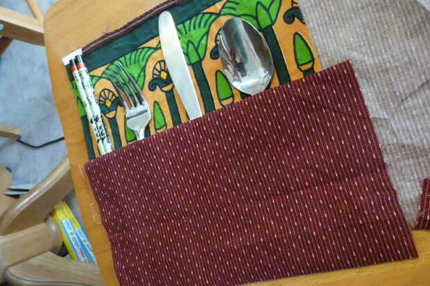 Hierro a sus telas. Encontrar los cubiertos se utilizar o encontrar cubiertos que se aproximan a lo que se podría utilizar. Incluir un espacio para un par de palillos. Organizar en consecuencia: esto puede ser estratégico, pensar cómo se rueda para arriba. Un recorrido a través de la práctica.