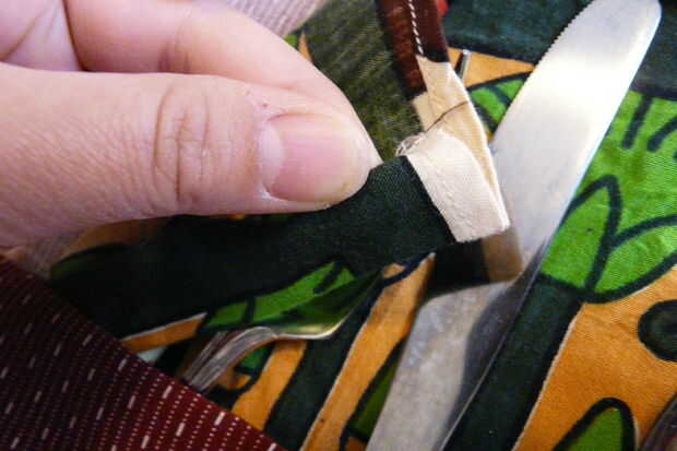 Siguiente: Coser los lados juntos el punto de pliegue para el aleta/utensilio tuck.
