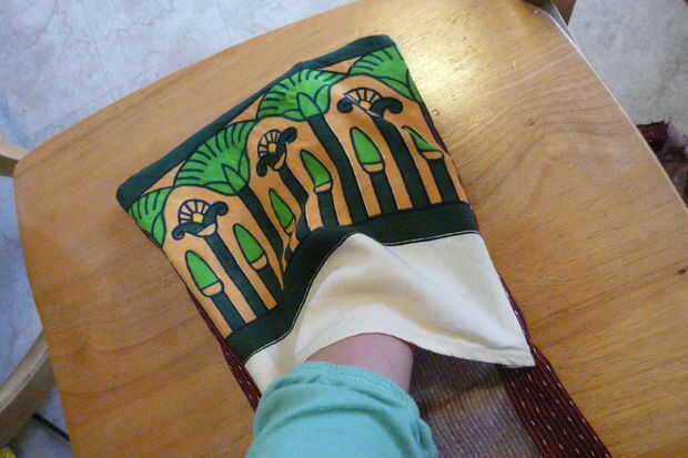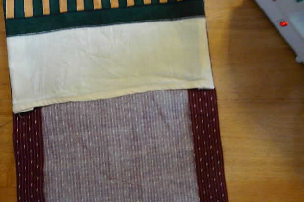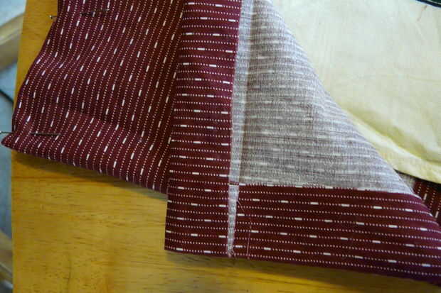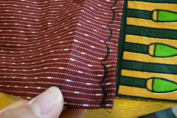 Luego, recomendado, utilizando unos alfileres para que coincida con la tela bien, coser primero un lado y entonces el segundo borde lateral un bolsillo gigante (esencialmente veremos mucho a un babero de bebé).