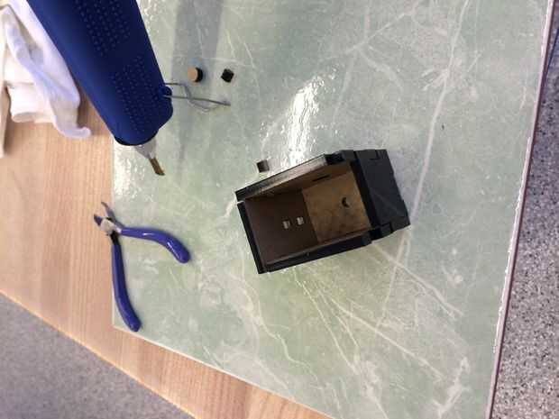 - El último paso fue que encierra la caja usando pegamento caliente. El cableado del circuito fue un poco desordenado, así que terminamos tener que usar cintas.